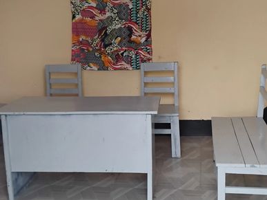 Furniture was provided for the reception area, along with curtains sewn by YAWE foundation, new tile, walls, ceiling, lights, exam table and medicine cabinet.